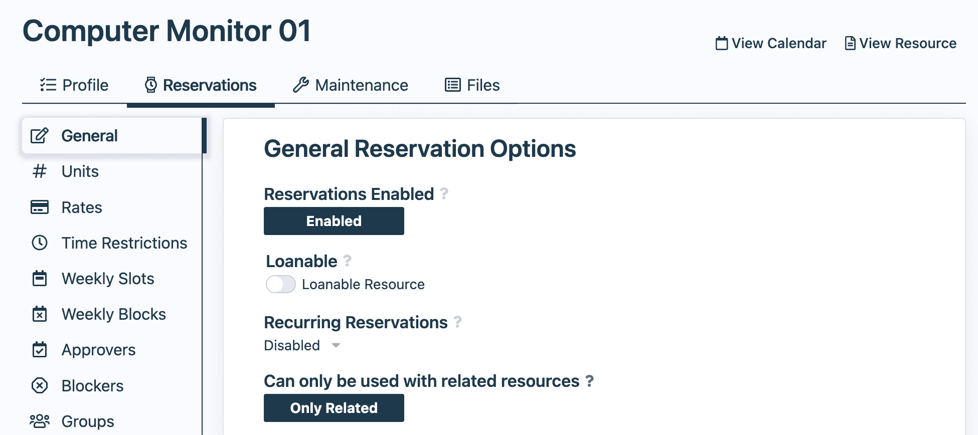 Now when booking Desk 01, the only resource that can be booked alongside Desk 01 is the related resource Computer Monitor 01.